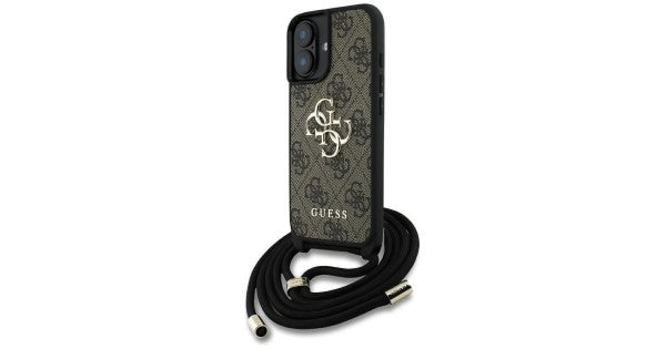Guess iPhone 16 Hülle Case 4G Big Logo Stap Crossbody Cord Braun